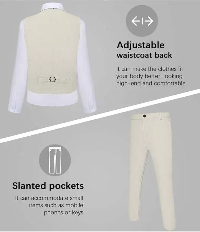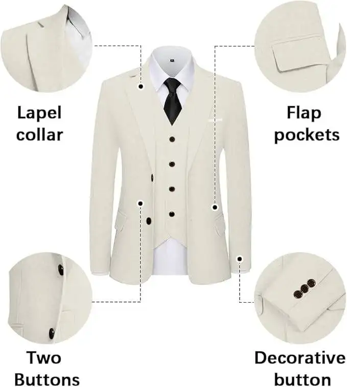 XiangHong Men's Casual Lightweight Linen Waterproof Plus Size 3-Piece Suit Breathable Blazer Jacket Zipper Fly Vest Pants